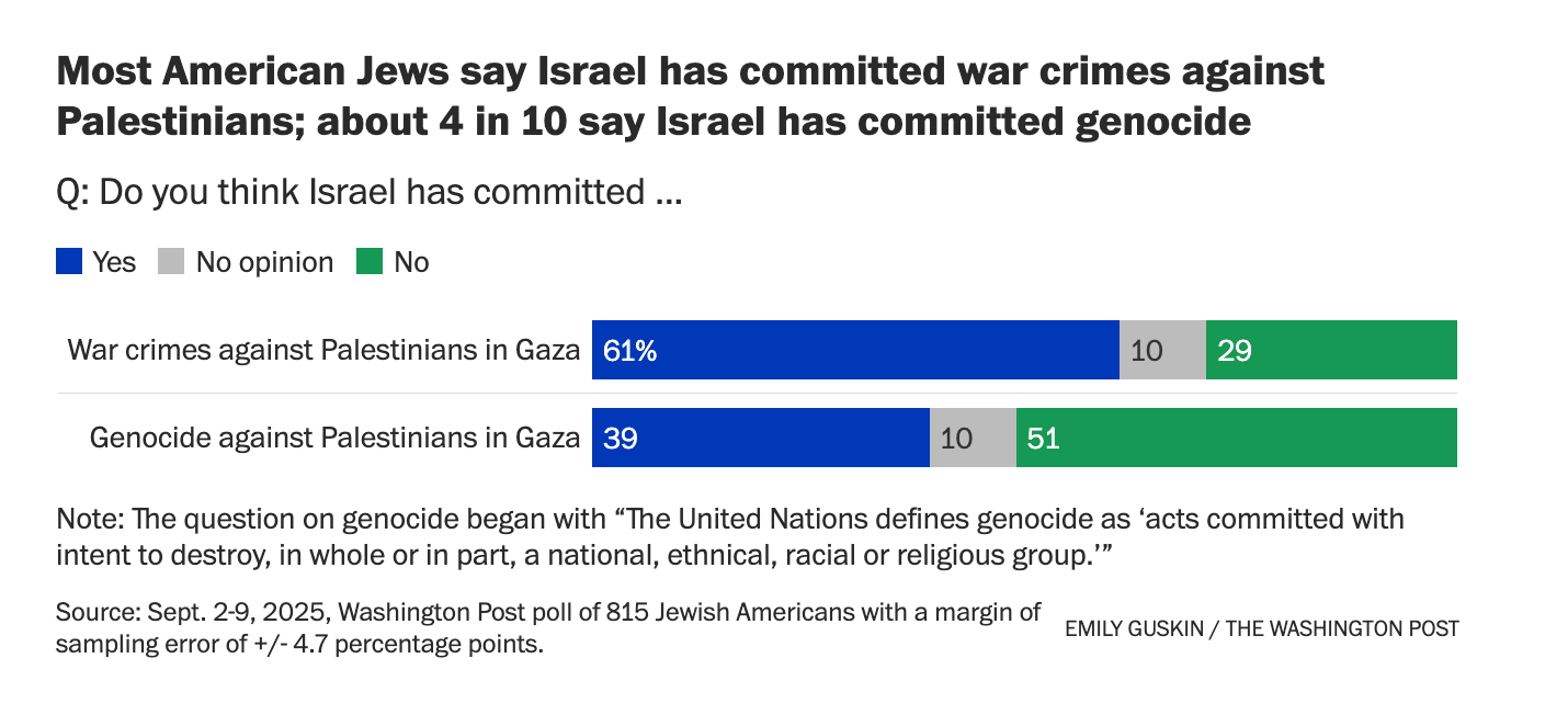 Four in ten Jewish Americans believe - like Zack Polanski - that Israel has committed genocide against the Palestinian people. That rises to 50% of Jewish Americans under 35.