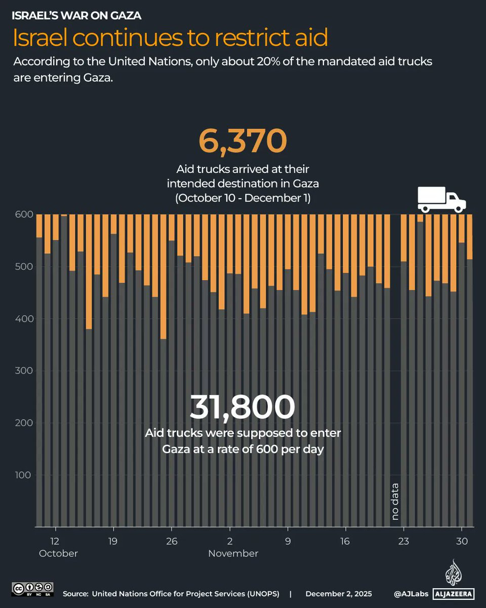 Israel continues to stop aid getting into Gaza. Again, in violation of the ceasefire, Israel has only allowed one-fifth of the aid trucks that were promised to enter.