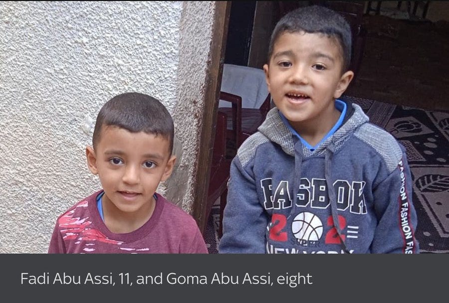 They were 8 year old Goma Abu Assi and 11 year old Fadi Abu Assi. They were little boys, little kids, trying to collect firewood.