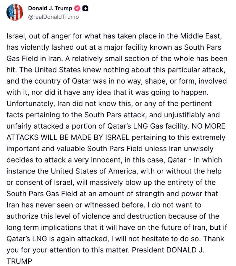 Yesterday, Israel attacked Iran’s South Pars gasfield - a crucial plank of its energy infrastructure. Iran had repeatedly promised that if such infrastructure was attacked, it would respond in kind - and, in accordance with its threats, attacked Qatar’s liquified gas facilities.